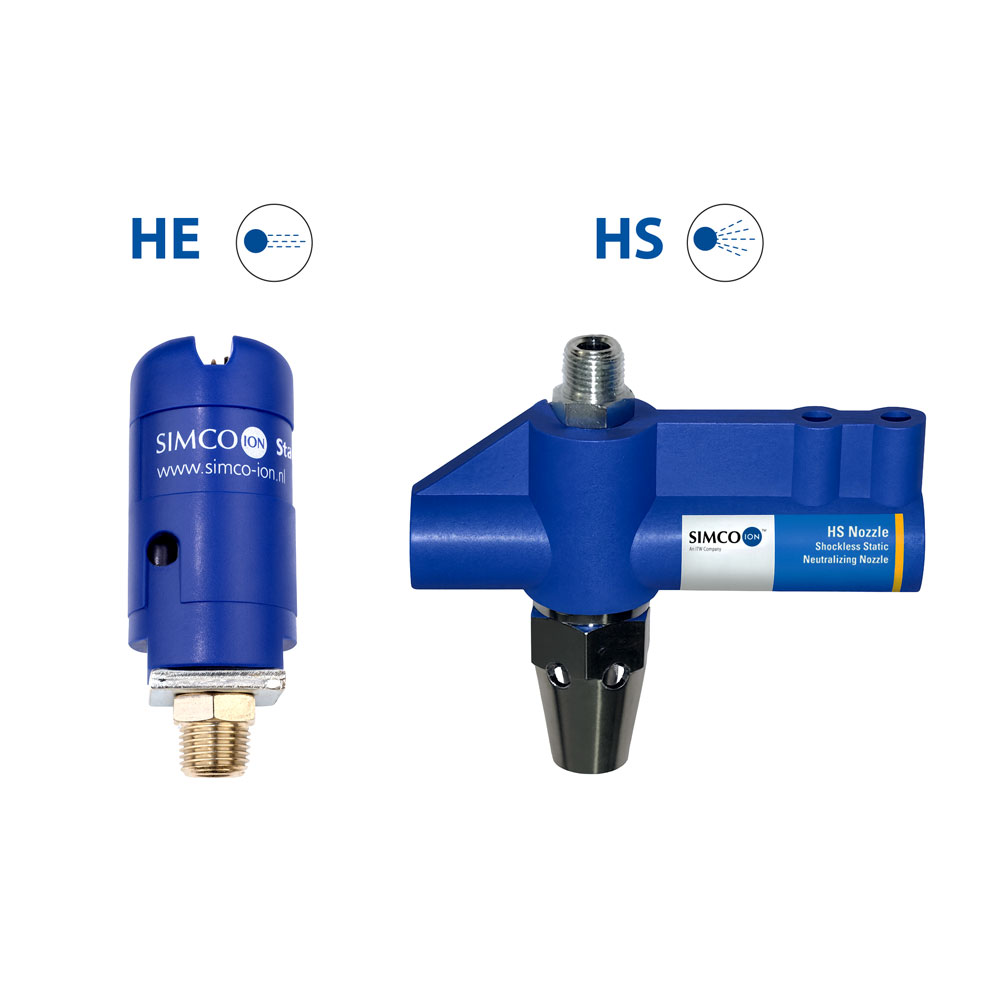 Ambas boquillas incorporan un diseño anticalambre, limitando la corriente en la punta ionizadora para garantizar la seguridad del operario.