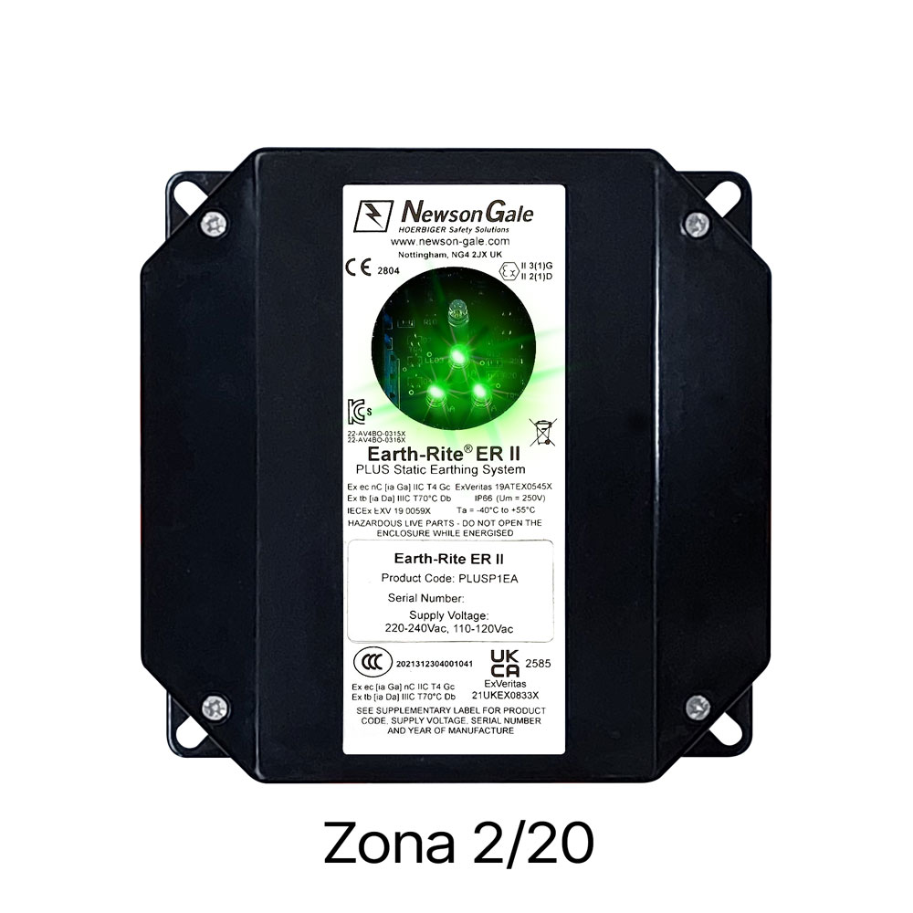 El Sistema Earth-Rite® II PLUS, está diseñado para poner a tierra cualquier elemento metálico, como bidones, GRG, cubas, etc… durante los procesos de llenado, vaciado, agitación, secado, o todos aquellos procesos que tengan un contenedor en zona ATEX. Dispone de relés libres de potencia y uno opcional IS para enclavar con el proceso e indicación visual de cambios de estado.