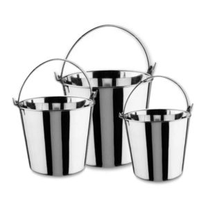 Cubo de acero inoxidable conductivoDiámetro inferior: 9,5 cm/13 cm/17,2 cm/21 cmDiámetro superior: 14 cm/20 cm/24 cm/28 cmAltura: 12-20,8 cmCapacidad 1,1 litros / 3 litros / 6 litros / 12 litros
