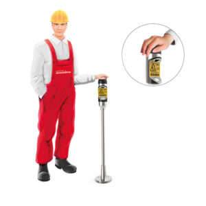 Descargador electrostático del personalAltura: 1100mmDiámetro tubo: 38mmDiámetro bola: 93mmAlarma visual mediante LEDs y pantalla y sonora (mediante voz o melodía)